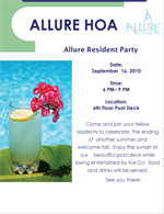Bei dieser Gelegenheit habe ich noch einmal (wie die letzten 3 Wochen fast täglich) darauf hingewiesen, dass es am Donnerstag bei uns um 18.00 Uhr (bis 21.00 Uhr) eine “Haus-Party” gibt. Die Hausverwaltung schmeißt eine Party am Pool für alle Bewohner mit kostenlosen Getränken, Essen und DJ!