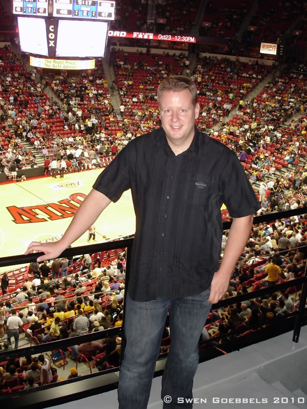 Am Mittwoch waren wir also (wie auch letztes Jahr) beim Pre-Season Basketballspiel der L.A. Lakers, nachdem diese ja die letzte Saison gewonnen haben (das Finalspiel hatten wir ja im Hooters gesehen!). Wir hatten schöne Sitzplätze mit einem tollen seitlichen Blick auf das Spielfeld und konnten am Spielfeldrand in der ersten Reihe Mike Tyson und Flavor Flav sehen, die anderen Promis kannten wir nicht …
