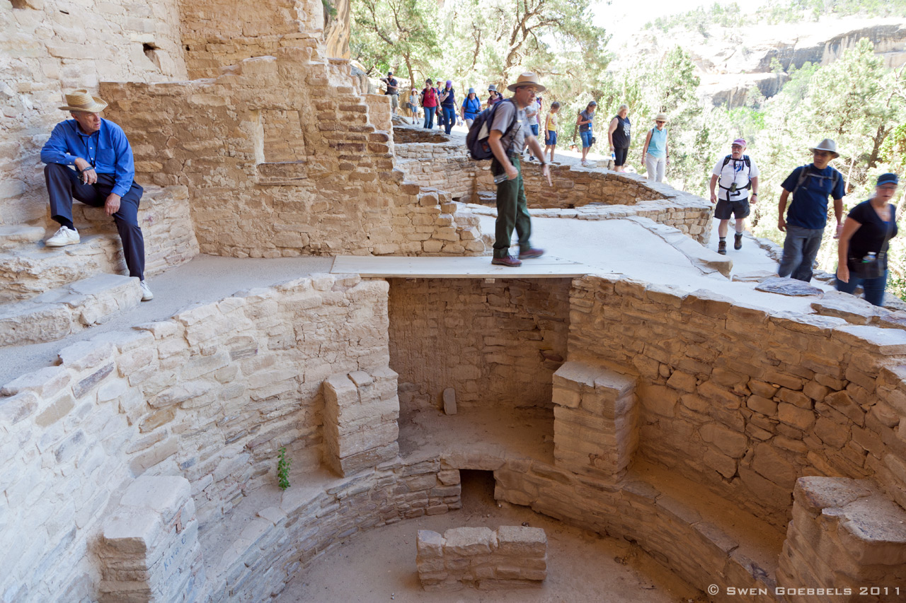 Nachtrag zu Donnerstag, den 23.06.2011:Bevor es von Durango aus zum Monument Valley ging, haben wir uns zunächst die Ruinen von Mesa Verde angesehen. Dieser Nationalpark ist der einzige der USA, der zum Schutz eines archäologischen Ortes eingerichtet wurde und ist auf der Liste der Weltkulturerben der UNESCO. Innerhalb des Parks befinden sich rund 600 Felsbehausungen, wie z. B. Cliff Palace, die größte Felsbehausung Nordamerikas. Sie liegt in einer 27 Meter tiefen und 18 Meter hohen Felswand-Nische und besteht aus rund 200 Räumen. Hier lebten im frühen 12. Jahrhundert die Anasazi.