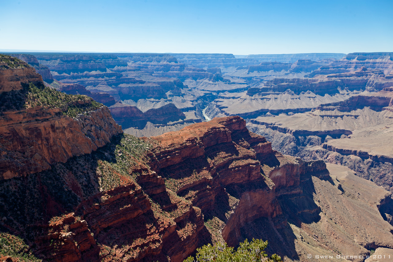 Dementsprechend skeptisch schaut sie auf ihrem einzigen Grand Canyon Foto, was wohl aber nicht am herrlichen Ausblick auf dieses atemberaubende Naturwunder liegt. Der Grand Canyon ist etwa 450 km lang, zwischen 6 und 30 km breit und bis zu 1800 m tief. Während man an den Aussichtspunkten über den Canyon schaut, lassen sich diese Ausmasße weder erahnen, noch begreifen.