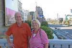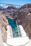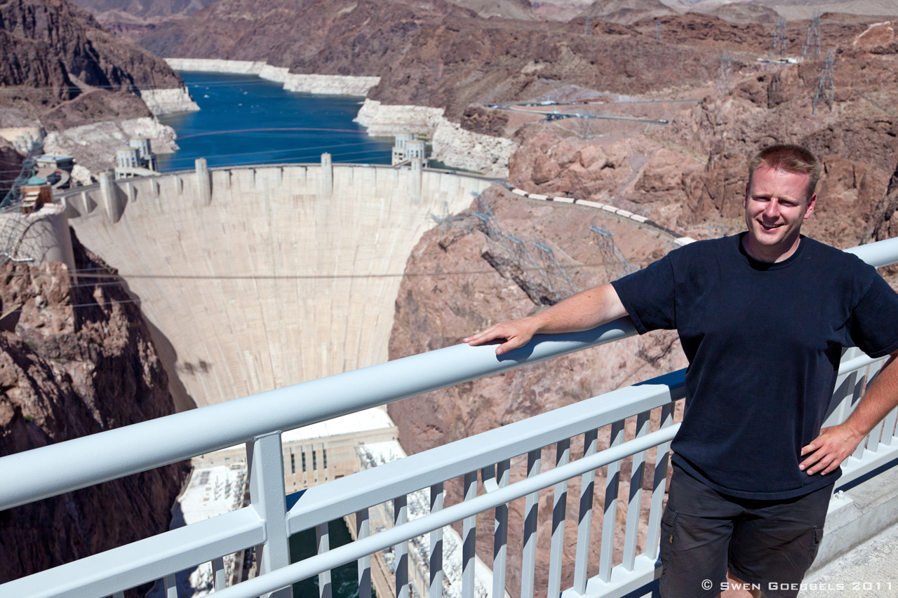 Weiter ging es dann zum Hoover Staudamm, dem größten Stausee der USA. Wir haben einen Ausblick die Staumauer hinuter genossen und sind dann auf einem kleinen Fußweg zur neuen Brücke über den Staudamm gegangen, die erst im Oktober 2010 fertig gestellt wurde. Wie man im Hintergrund des Fotos einer Schautafel gut erkennen kann , war es wirklich heiß an diesem Tag und somit gestaltete sich alleine dieser kleine Fußmarsch schon mehr als schweißtreibend. Auf weitere Fußmärsche und Ausblicke haben wir dann verzichtet und sind ohne weiteren Stopp nach Las Vegas gefahren.