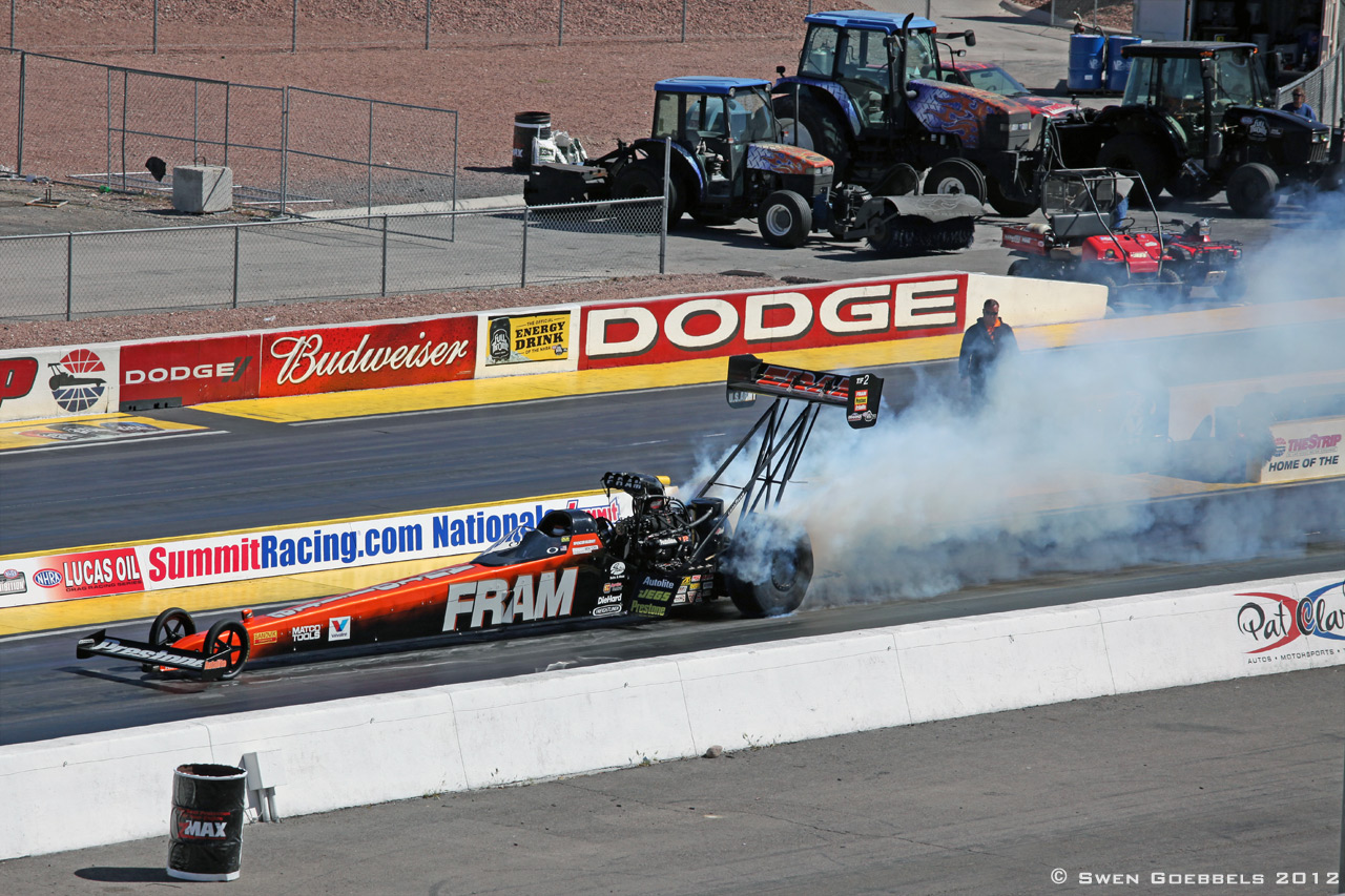 Letztes Wochenende war mal wieder Dragster-Rennen am Motorspeedway, der von uns aus jetzt auch wirklich nur um die Ecke liegt. Wir konnten die Top-Fuel-Autos sogar bis ins Zimmer dröhnen hören. Leider mußte Swen arbeiten; hatte aber am Montag dann mal die Gelegenheit kurz vorbeizufahren und siehe da: es waren noch einige Teams vor Ort, um zu trainieren und so konnte Swen zumindest ein paar Dragster fahren sehen (auch ein Top-Fuel-Dragster) und einige nette Fotos machen!