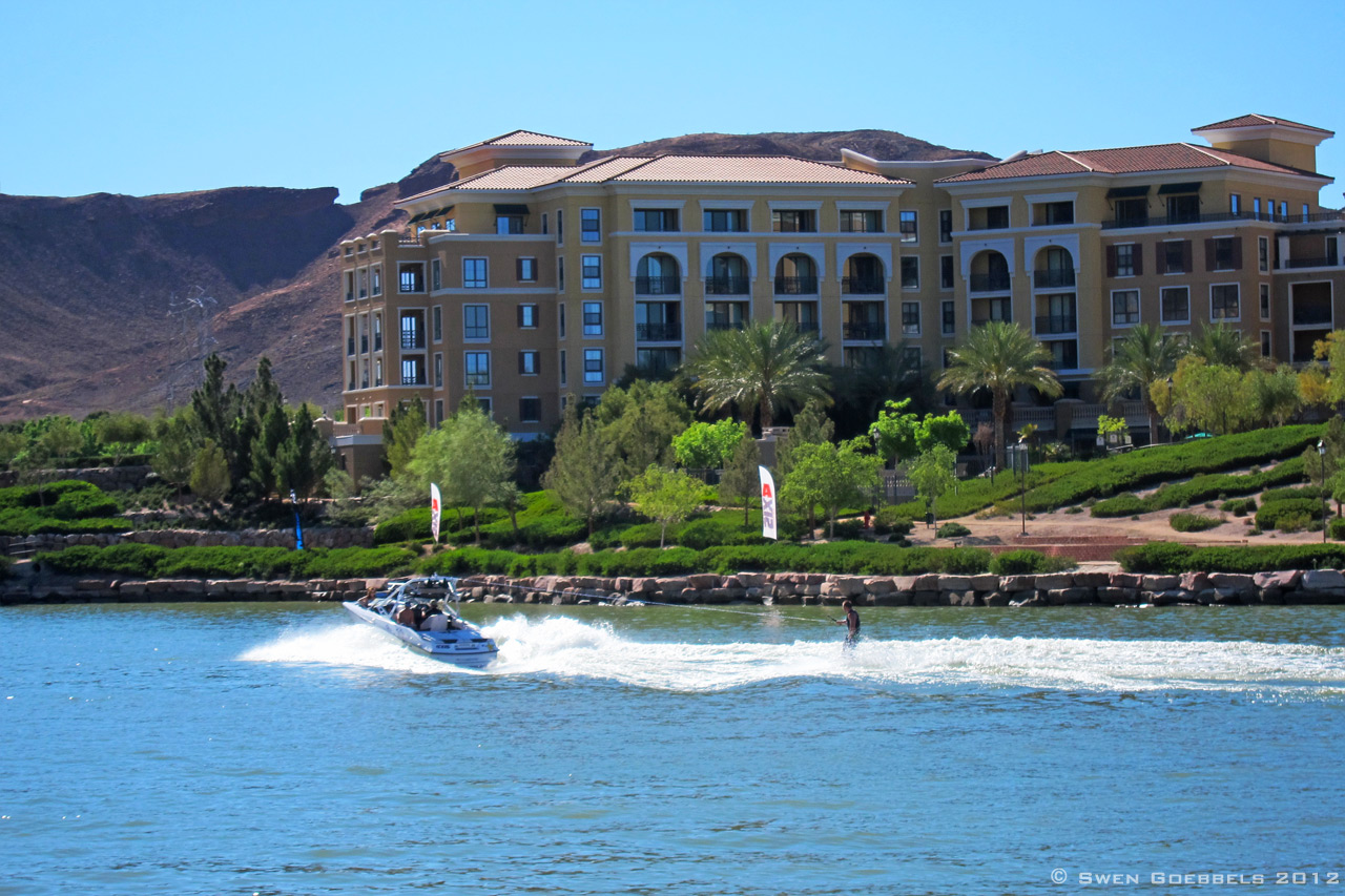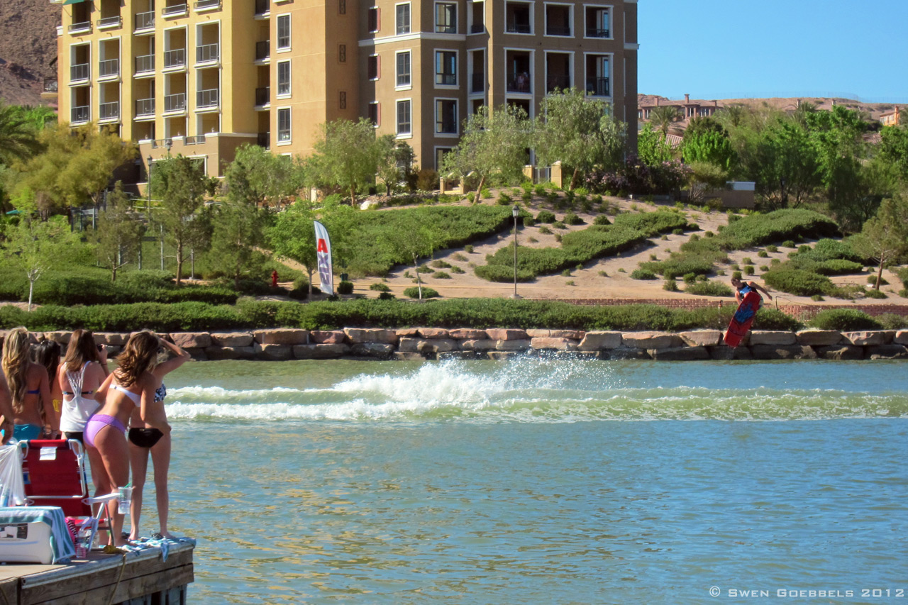 Wie beispielsweise ein Red Bull Wasserski-Event am Lake Las Vegas: eigentlich sind wir an einem Samstag „nur“ zum Eis-Essen und Planen hier her gekommen, aber die Qualifikationen des Red Bull-Events für den nächsten Tag haben uns ganz schön abgelenkt!