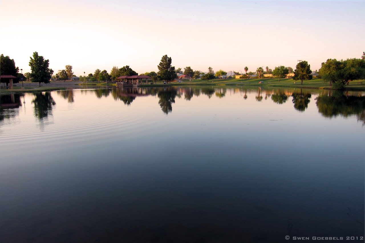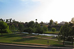 Eine Überraschung war auch Phoenix selber. Bei einer 1. Übernachtung und Durchreise hier in 2010 fanden wir die Stadt eher nichtssagend und langweilig. Wir haben uns gefragt, was die Stadt lebenswert macht und so viele Menschen dazu bewegt, diese ständige Hitze hier zu ertragen. Jetzt beim 2. Hinsehen hat sich uns der Reiz Phoenix schon mehr erschlossen. Die Stadt ist tatsächlich (trotz Hitze) lebenswert. In einer Woche quer durch die Stadt fahren, haben wir kaum eine schlechte Wohngegend gesehen. Die Stadt ist zwar eigentlich ein Konglomerat aus vielen kleinen Städtchen, aber jeder Stadtteil ist schön und sogar sehr grün. Die Stadt scheint erstaunlich viel Wasser zu haben. Überall sind man Flüsse oder Kanäle durch die Stadt fließen und es gibt überall schöne große und grüne Parkanlagen. Es gibt viel High-Tech-Industrie in Phoenix, was nach vielen sehr guten Arbeitsplätzen ausschaut und eine große Universität, die Arizona Southern University. In deren Hauptgebiet in Tempe haben wir uns fast täglich rumgetrieben. Das Zentrum um den Campus herum ist quirlig und voller Leben, hier gibt es viele Restaurants und Boutiquen und es liegt direkt am Fluß mit einer Strandpromenade. Hier haben wir uns auch mal ein vergleichbares High-rise wie in Vegas angesehen und uns für Wohnungen interessiert. Wir waren wirklich beeindruckt! Eine fantastische Wohnanlage!