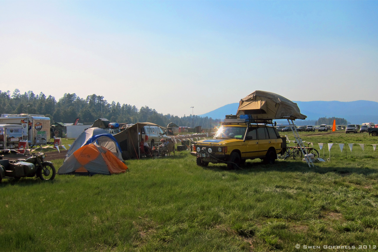 Nur die Reiseleitung hat mal wieder versagt. Das Hotel dieses Mal in Flagstaff war der totale Mist. Wir haben es liebevoll „Roaches Inn“ genannt (“Kakerlaken Herberge”). Eigentlich wollte ich ja gar nicht einchecken, als ich es schon von außen gesehen habe, aber Swen meinte, das ziehen wir jetzt durch. Nach 3 Monaten Hotelübernachtungen war dies mit Abstand das schäbigste Motel, das wir je gesehen haben! Und als ich dann mal nachgesehen habe, wo denn am nächsten Tag die Ausstellung ist, haben wir festgestellt, dass diese gar nicht in Flagstaff ist, sondern 1 Stunde südlich Richtung Phoenix. HA, HA, HA ….! Der Weg zu der Ausstellung war sehr schön. Sie lag mitten im Grünen, draußen auf einer großen Wiesenfläche mit anliegendem „Campingplatz“ – hauptsächlich natürlich „wildes“ Camping (ohne Strom-/Wasser-Anschluß) – wie es sich gehört. Wir sind den ganzen Tag draußen rumgelaufen, haben uns einen Sonnenbrand geholt und uns die Augen aus dem Kopf gestaunt. Haben wollen! So viele coole Geräte und so nette Leute! Unglaublich! Wir haben noch nie so viel mit Leuten geredet, wie auf dieser Messe. Jeder hatte entweder ein interessantes Produkt oder Auto oder einfach viele interessante Stories zu erzählen. Es war super! Wir waren extrem begeistert und hätten uns am liebsten sofort ein Zelt gekauft (von dem wir ebenfalls begeistert waren), aber es hätte ja nicht mehr ins Auto gepaßt.