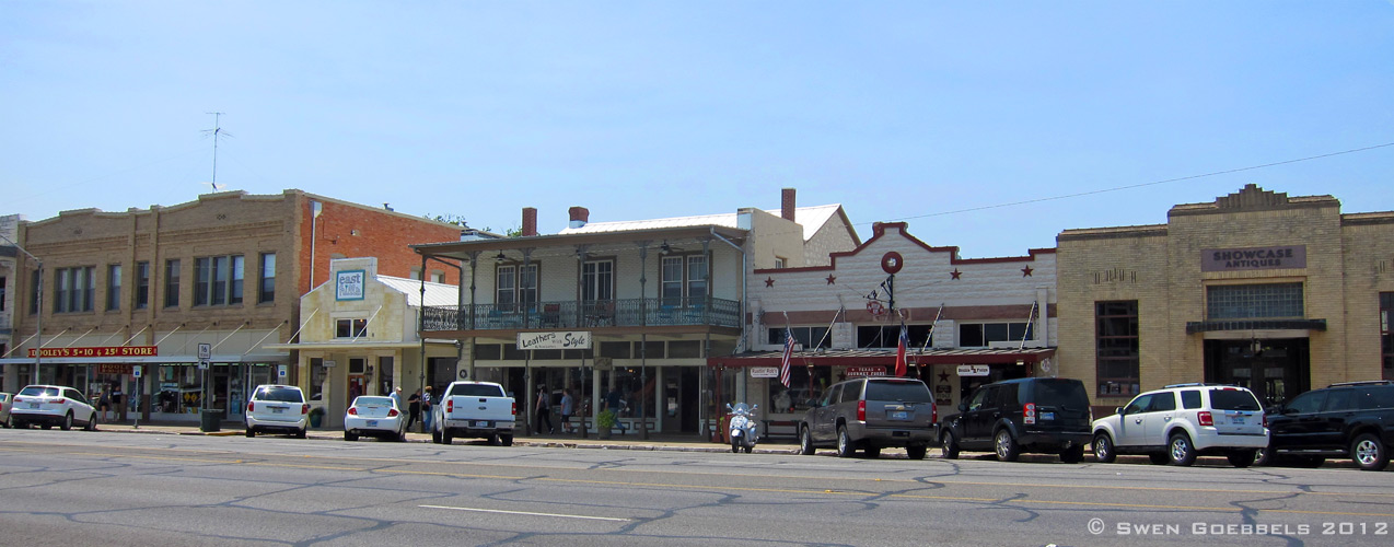 Wie sich dann am nächsten Morgen (bei Licht betrachtet) herausstellte, hatten wir einen Volltreffer gelandet. Fredericksburg war eine zuckersüße Stadt! Klein und überschaubar, ordentlich, sauber, nette Leute und viel süßer Tinneff-Tourismus. Wir sind ein bißchen durch die Stadt gefahren und dann die Hauptstraße rauf- und runter gebummelt, um an alten Trödelläden stehen zu bleiben, erstaunt die deutschen Restaurants inklusiver deutscher Schunkelmusik zu betrachten, deutsche Straßenschilder und Geschäfte. Ein Restaurant hieß „Der Ausländer“; ein anderes „Lindenbaum“ beide sehr bayrisch aufgemacht mit Oktoberfestmusik; ein alter Trödelladen hieß „Der Alte Fritz“ und verkaufte ollen Ramsch. Wie sich herausstellte, hat die Stadt deutsche Gründerväter und eine lange deutsche Geschichte ….