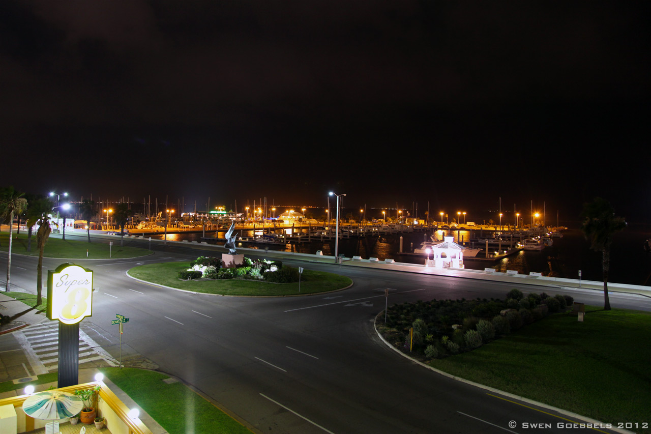 Abends sind wir dann durch San Antonio durch. Schade. Diese Stadt scheint wirklich sehr schön zu sein. Im Dunkeln zumindest gefällt sie mir sehr gut; Verkehr ist um diese Uhrzeit auch zu ertragen; aber leider haben wir ja keine Zeit. Und die Fotos sind im Dunkeln während der Fahrt leider auch nichts geworden. Es geht weiter nach Corpus Christi. Swen findet uns dort mitten im Zentrum gegenüber der Hafenpromenade ein (für die Lage) verhältnismäßig günstiges Super8.