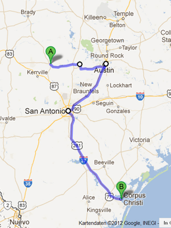 Hier aber erst einmal den Reisebericht Nachtrag zu Mittwoch, den 23.05.2012: Fredericksburg – Corpus Christi: