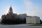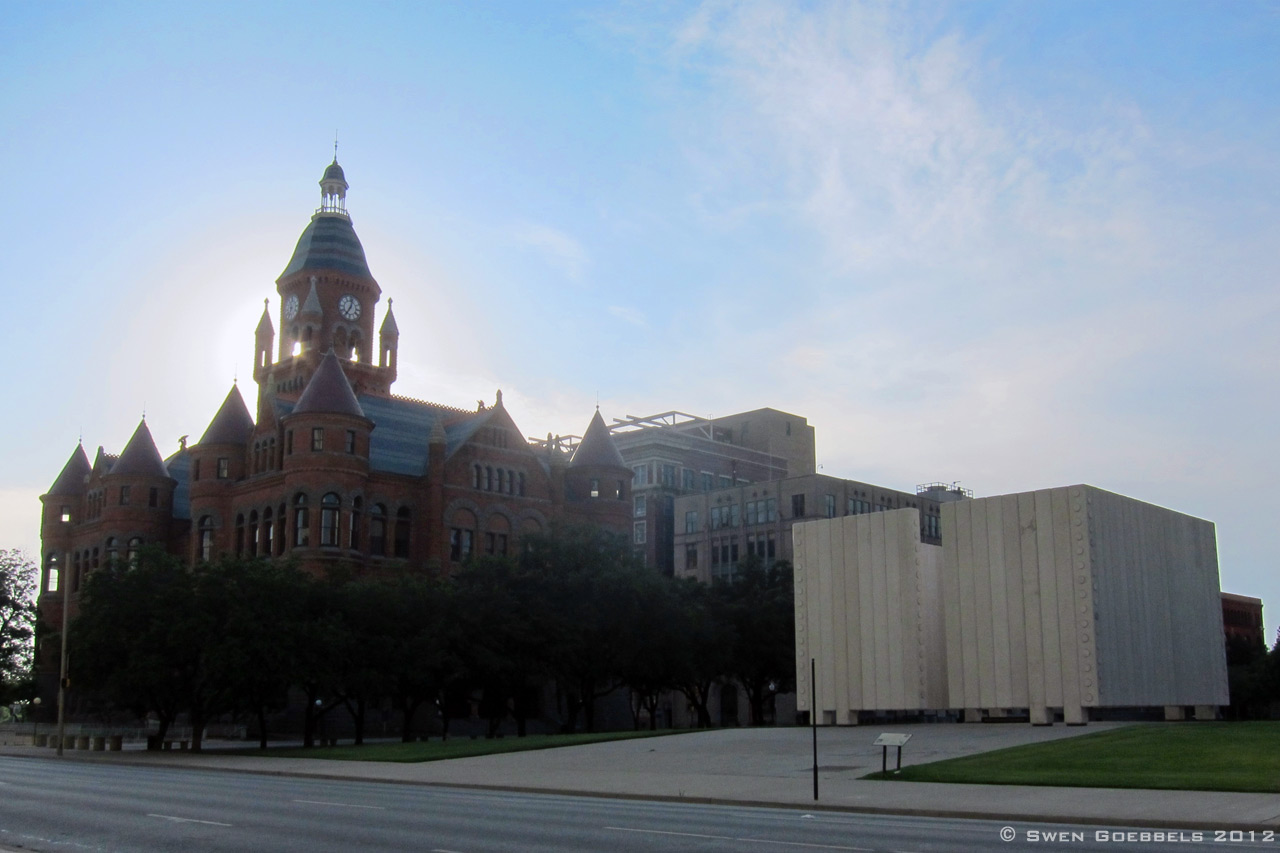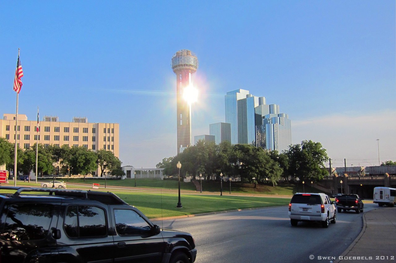 Dallas als Stadt hat uns auf jeden Fall schon einmal besser gefallen als Houston. Sie hat eine wirklich schöne Skyline (besonders auch bei Nacht!). Als denkwürdigen Ort mussten wir uns natürlich die Dealey Plaza anschauen. Das ist der Ort in Dallas, an dem am 22.11.1963 der US-Präsident John F. Kennedy erschossen wurde. Der Präsident befand sich auf einer Wahlkampfreise und war auf dem Weg zum Flughafen, als gegen 12.30 Uhr mehrere Schüsse auf seinen offenen Wagen abgefeuert wurden. Auf der Straße sind die Stellen mit Kreuzen markiert, wo die Schüsse trafen. Auf dem Platz dahinter steht ein großes Denkmal, das an den Präsidenten und diesen schwarzen Tag erinnert. Hier steht auch jemand mit einem kleinen selbst gemachten Informationsstand, der erklärt, weshalb das Attentat –so wie es berichtet wurde- gar nicht abgelaufen sein kann. Er verkauft DVDs, die Gegenbeweise und Widersprüche liefern. Tatsächlich bleibt das Attentat auf Kennedy ein Rätsel. Untersuchungen, die Ungenauigkeiten, Widersprüche und auch Fälschungen vorheriger Ermittlungen aufdeckten, konnten dieses Rätsel jedoch bis heute nicht zweifelsfrei klären. Die Akten über Kennedys Ermordung bleiben bis 2017 unter Verschluss.