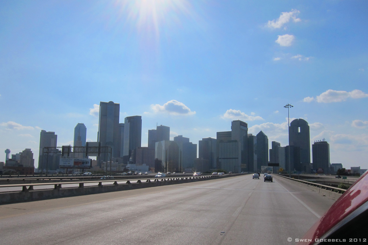 Von Houston ging es dann weiter nach Dallas – in das nächste schöne Sheraton Hotel (vom 28.05.-31.05.2012). Trotz schönem Fitness-Studio und Pool haben wir das hier gar nicht genutzt. Das Wetter war die ganze Zeit sehr durchwachsen, tagsüber schön, aber nachts mit ordentlichen Gewittern und stundenlangen Blitzen. Hier in Dallas haben wir dann sofort einmal unser Auto zu einem lokalen Dodge Dealer gebracht zur Inspektion. Tatsächlich war wohl einiges vorne an der Achse kaputt, was alles erneuert wurde. Der Fehler hat wohl auch zu einer falschen Spureinstellung geführt, was uns jetzt völlig abgefahrene Reifen bescherte (dabei waren die Vorderreifen noch relativ neu). Bei einem schauen schon die Nähte raus und da wir in ganz Dallas keine geeigneten Offroad-Reifen bekommen, muss halt der Reservereifen her. Am 3. Tag und nach etlichen Diskussionen mit dem Händler und Reparaturen bekommen wir endlich unser Auto wieder und die Fahrt kann weitergehen.